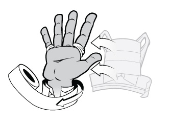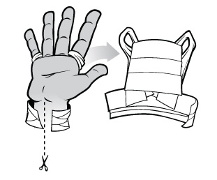 To remove, simply cut the wrist wraps on the inside of your wrist. Carefully pull the tape glove off intact.