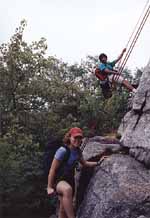 Lindsay and Vijay on rappel.