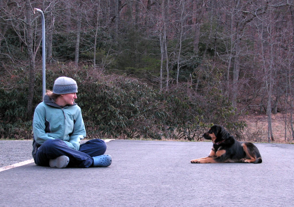 This puppy lived nearby and came around camp every night. She was terrified of people, so we don't really understand why she kept coming around.