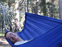 7/11 Fly from DC to San Francisco. I have a seat with plenty of extra legroom and the plane departs on time. I consider these things to be good omens. Meet Jason and Morri. We fill Morri's small car with all our gear and drive to Yosemite. We stop at Hogdon Meadow -- the first car campground inside the park -- and crash for the night. We see one fox roaming the area.