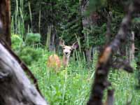 Not wanting to pay $20 for a camp site, we explore the Bridger-Teton National Forest. Driving down the Gros Ventre Road, we find even the forest service campsites cost money, so we detour down a dirt road looking for a primitive campsite. This turns out to be a mistake. The narrow, wet, dirt road gets steadily steeper. Soon the Subaru is tobogganing out of control down the road. Luckily the road flattens just enough for us to stop about 100 yards before a steep drop. There I perform a deft 27 point u-turn and with much tire spinning we manage to get back up to the main road. Didn't even have to put on the chains. After that experience, we throw down our stuff in a pullout and spend the night.