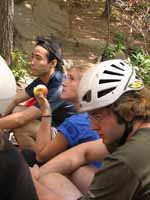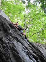 Monday we got to Main Wall where I lead Gold Digger (5.8+), toprop Underdog (5.10a) an area classic, toprop Goldbug (5.10d), and lead the first pitch of Rock Du Jour (5.7). Everyone is tired and we call it a day early. We all go for a nice swim (ahhh... vanilla shampoo) then I drive off to see Lindsay who lives nearby.