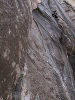 3/31 We are now a team of three with the addition of Jack. It is hot and I'm intent on staying in the shade! We climb Dark Shadows, and I lead p3 easily this time. No slipping! Later in the day we climb Topless Twins on Brass Wall and Straight Shooter just as they are going into the shade. I back off Straight Shooter at the crux and make Jack take the lead. I get the climb clean on toprope, but it feels desperate and I'm glad to not have led it.
