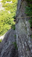 Started our trip Saturday at Pokeomoonshine. We climbed the first two pitches of Fastest Gun in 95F temps with 95% humidity. I was melting too much for the upper pitches. Have to get back to those when the weather is better. First two pitches were amazing. Then we climbed Bloody Mary which was also totally amazing. I think I used more chalk climbing those pitches than I have in the previous 12 months of climbing combined. After climbing we went for a swim at Split Rock falls on the Boquet. The cascade was clear and refreshing. Definitely my favorite swimming hole in the Dacks... ummm... wait... it was mucky and there were used needles everywhere. Don't go.