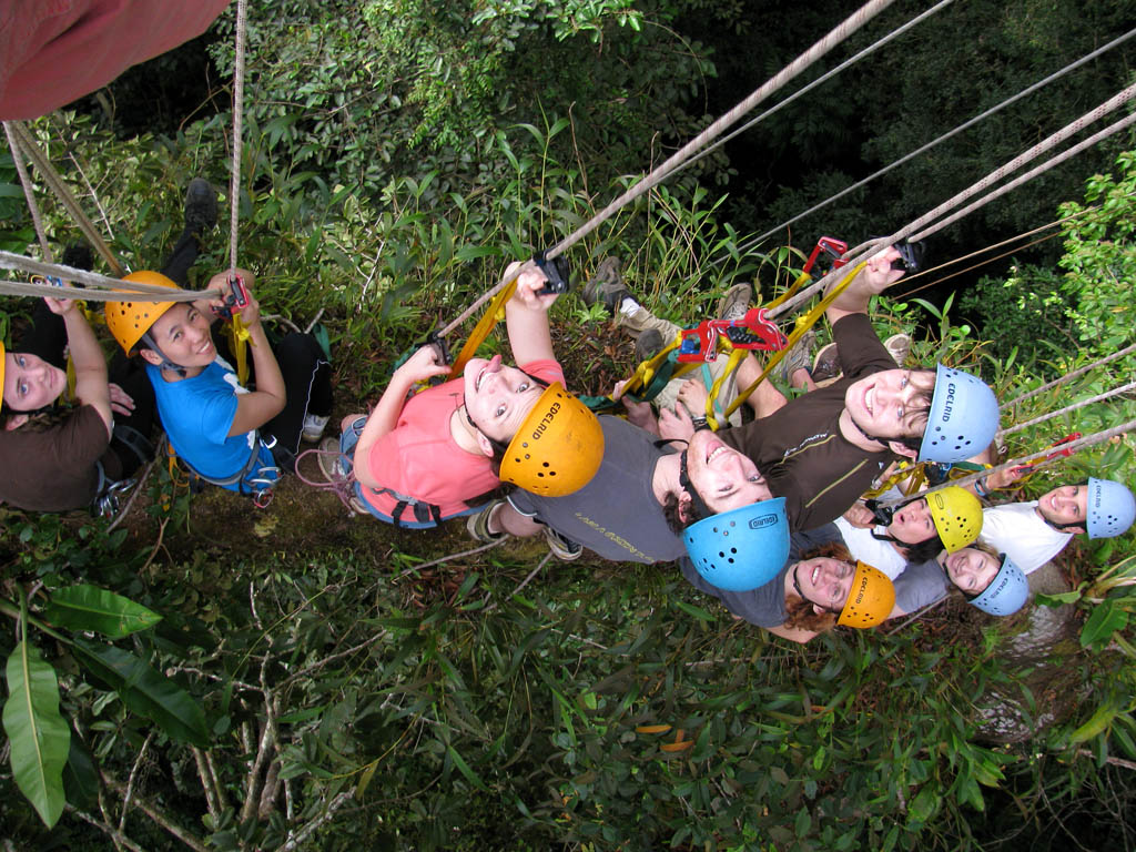 The entire class 100' up in Gringo Mike's tree. Hannah, Regie, Casey, Mike, Colin, Drew, Joe, Alex, Brandon.